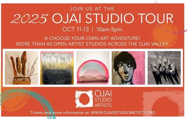 Visit the Ojai Valley Museum where all the 60+ Ojai Studio Artists have work in the Metamorphosis Exhibition. Buy a ticket, pick up the Tour book and plan your weekend schedule of Studio visits.