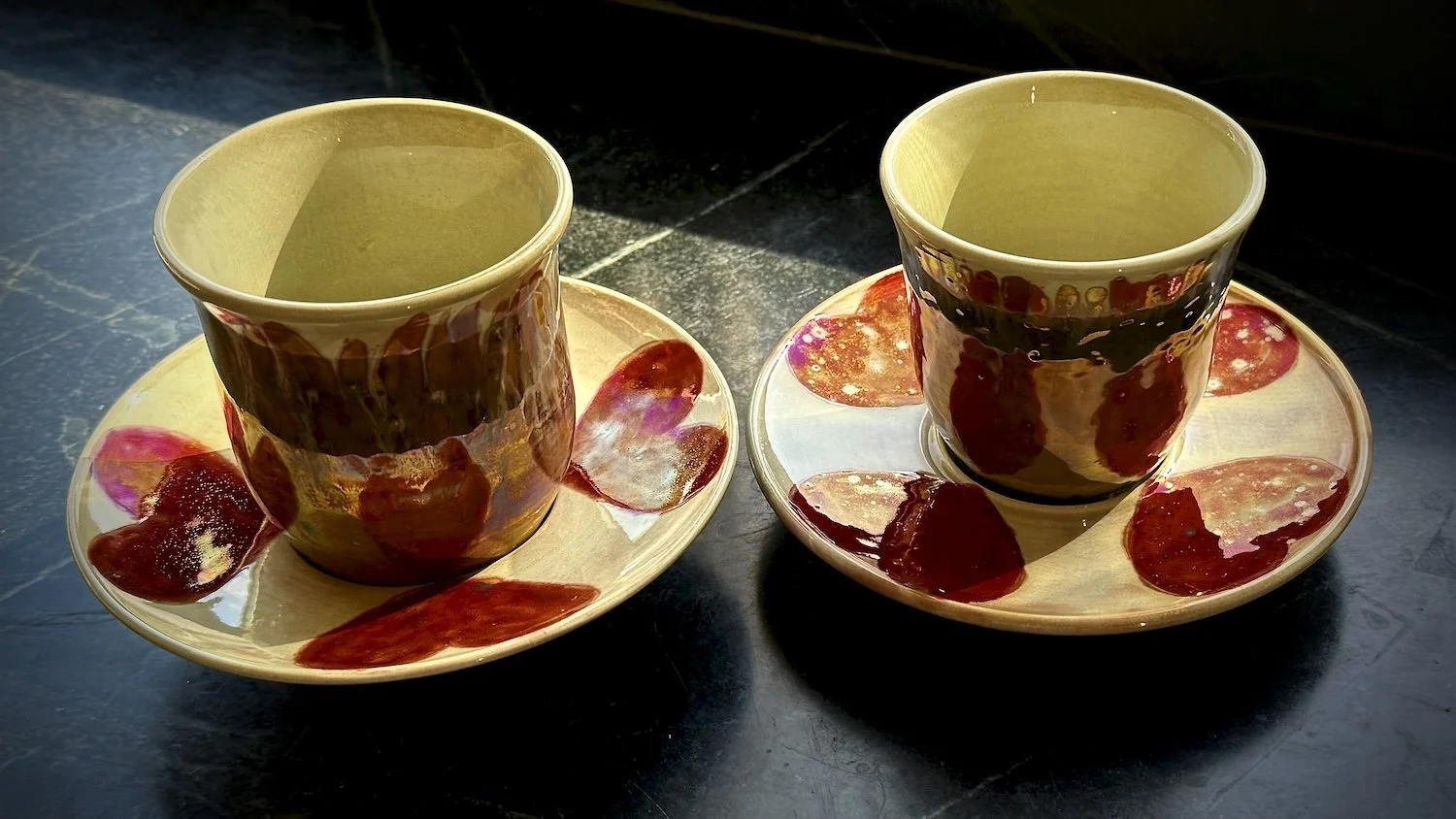 A recent pair, playing with the Sacred Heart idea. Pleased to get the hearts reflecting back onto the lustred sides.